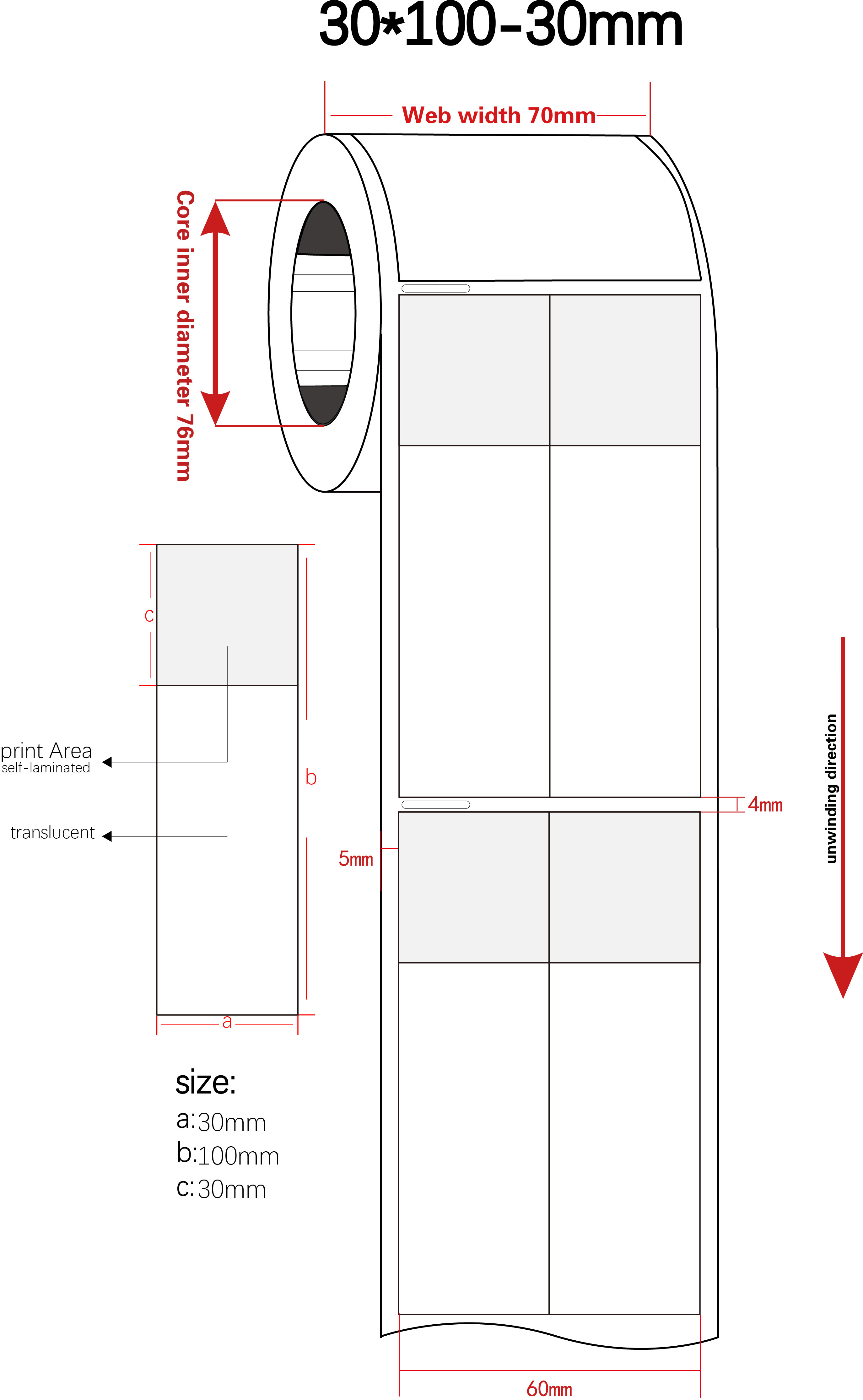 30×100-30 ملم 1 مليمتر الأبيض المات الشفاف المقاوم للماء ملصق الفينيل أ4
